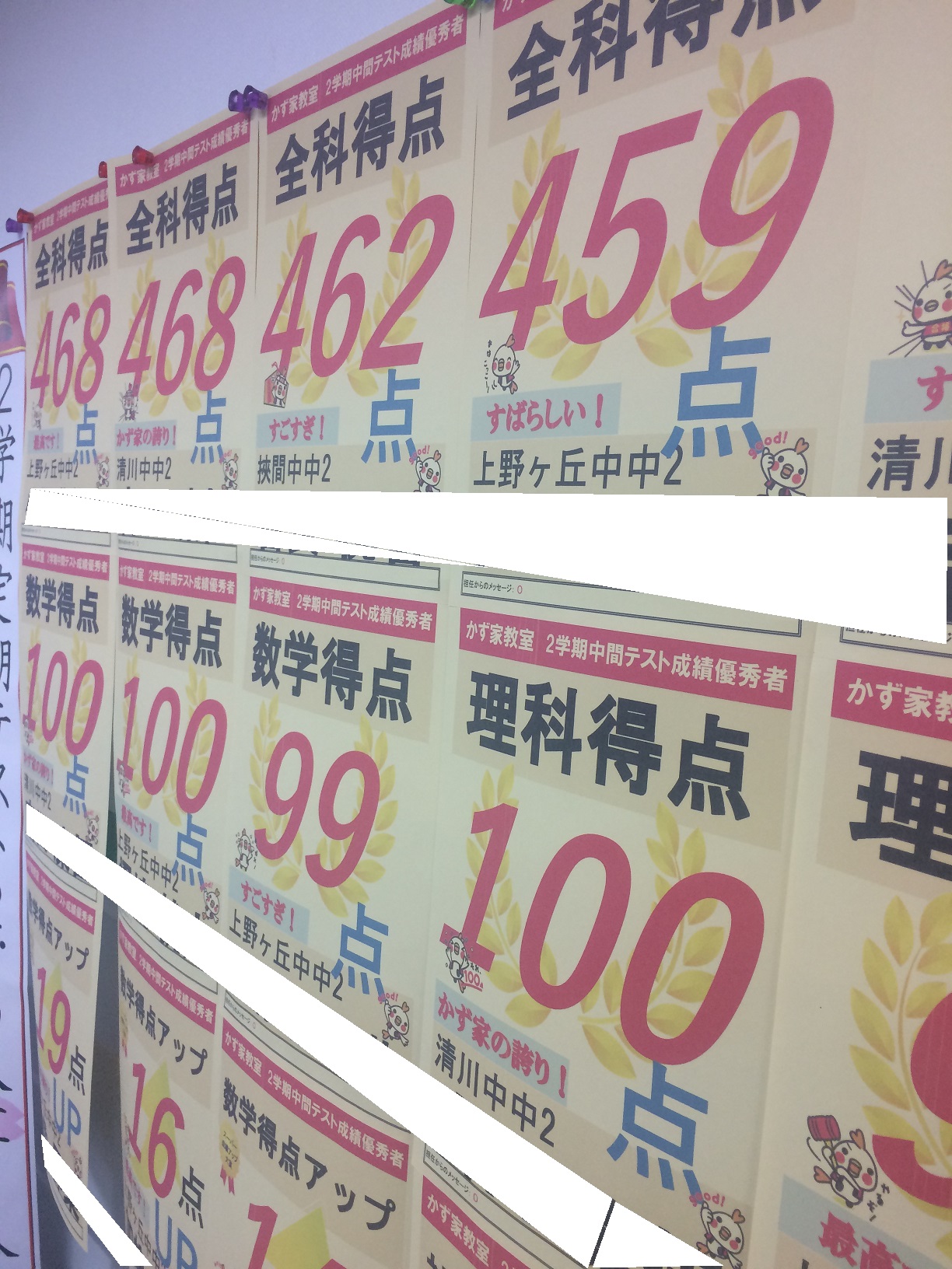 また、学年1位を取った生徒や5教科合計450点を突破した生徒も続々です!