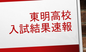 2/10(水)に東明高校の一般入学者選抜試験の合格発表が行われました。 学習診断テスト、合同模試と1年間中3の成果をお伝 … 続きを読む 私立高校合格発表~東明高校編~